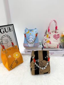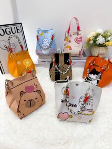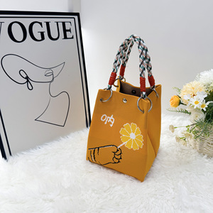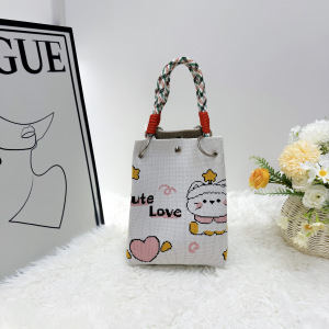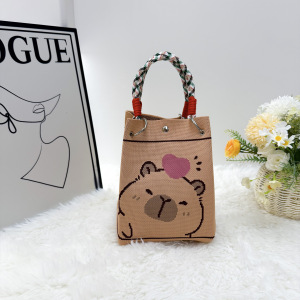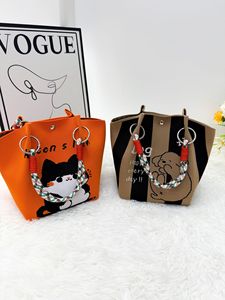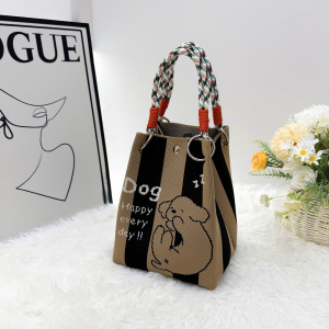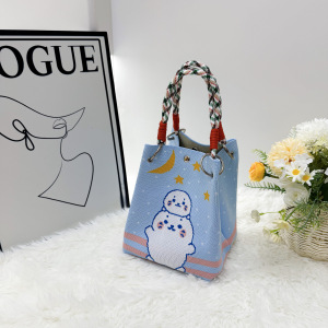 秋冬新款可爱动物针织水桶包女卡通百搭手拎包通勤大容量手提包