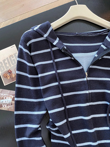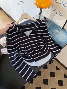 韩系早秋穿搭假两件半拉链连帽针织衫女2025新款时尚针织上衣