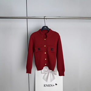 ce25秋冬新款小香风立领刺绣百搭针织开衫毛衣 4色
