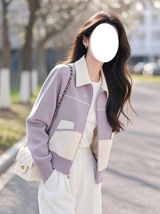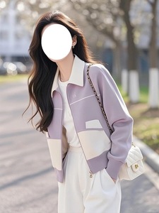 小香风洋气紫色短外套女春装2025新款韩版时尚百搭开衫拉链卫衣