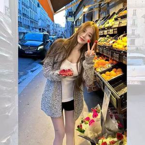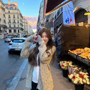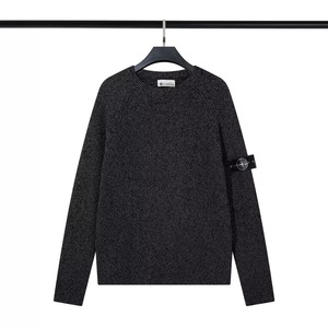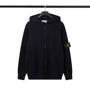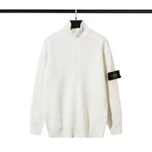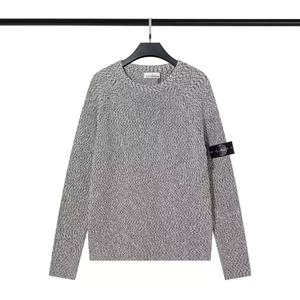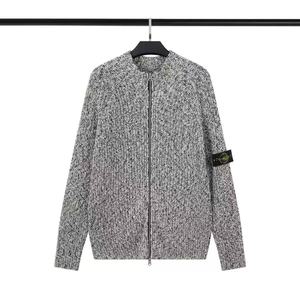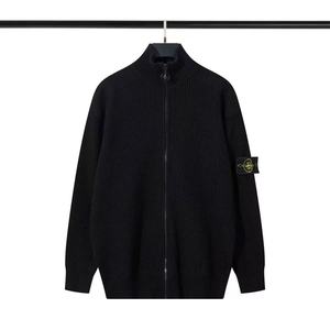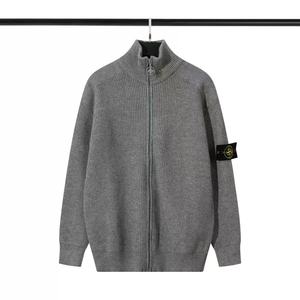 25石头宽松设计感慵懒风长袖跨境纯色毛衣开衫外套徽章男女情侣岛