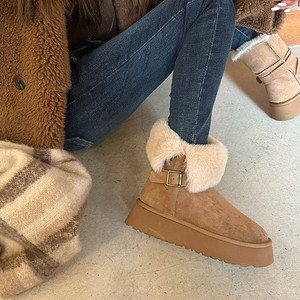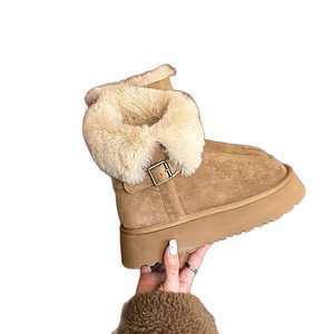小个子厚底雪地靴25冬季新款圆头百搭加绒加厚两穿翻毛短筒雪地棉