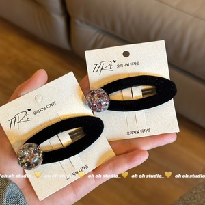 【oh oh】韩国欧尼同款彩钻球球丝绒边夹韩里韩气高级感刘海发夹