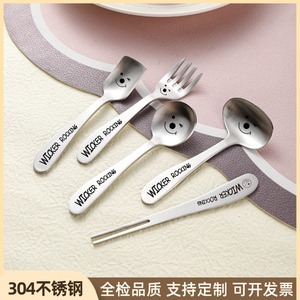 笑脸304不锈钢勺子可爱儿童勺子叉子幼儿园宝宝喂养勺子辅食餐具