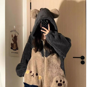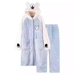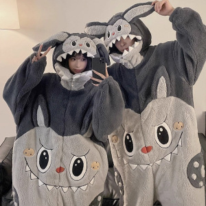 毛茸茸可爱秋冬季睡袍灰色高级凯蒂猫毛绒连帽斗篷时尚网红套装