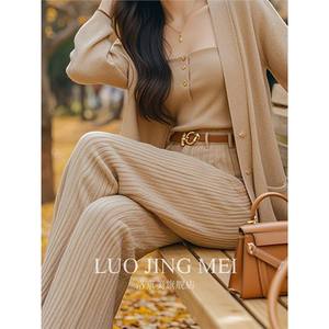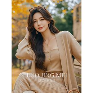深圳南油欧货气质女神范高级感杏色吊带开衫阔腿裤三件套秋装女