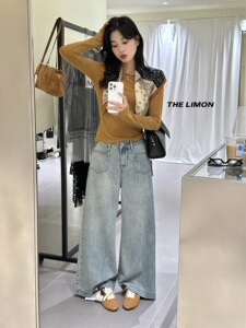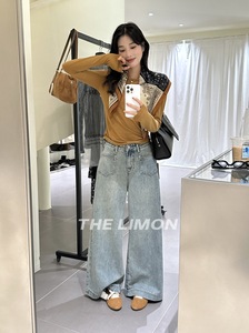 【高品质订货】腿型美颜镜~超模裤!韩系显瘦显高微喇裤牛仔裤