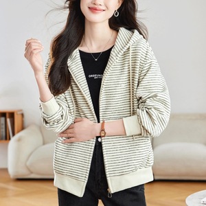 条纹连帽卫衣外套女春秋2025年新款中年妈妈宽松气质休闲百搭上衣