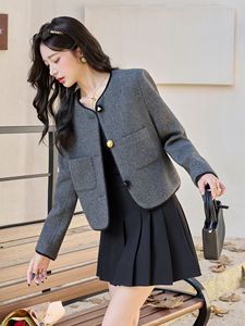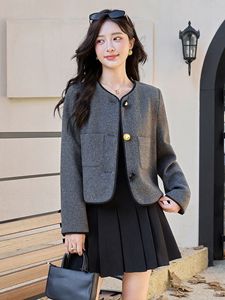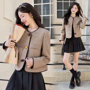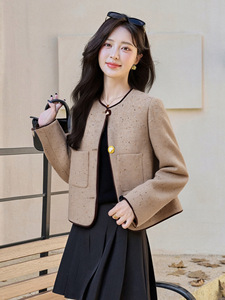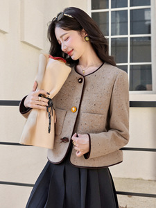 小香风女式毛呢外套2025秋冬季复古高级设计感气质长袖上衣YJ8635