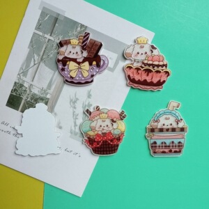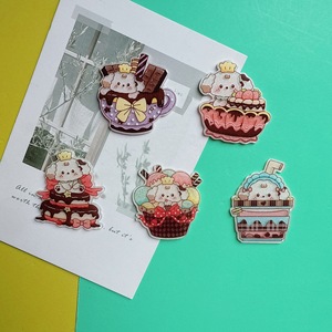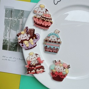 卡通可爱超萌甜品小狗亚克力贴片 diy发夹胸针徽章冰箱贴饰品配件