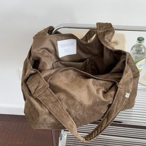 2025复古软面麂皮绒面女包2025新款流行休闲大容量单肩包爆款工厂