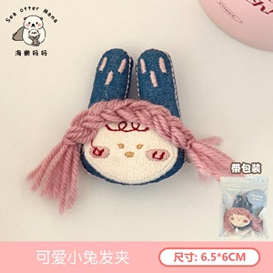 韩系甜美布艺娃娃发夹发绳可爱侧边碎发刘海夹高弹力马尾发圈发饰