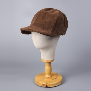 日系麂皮绒鸭舌帽女时尚潮金属丝帽檐纯色百搭帽子