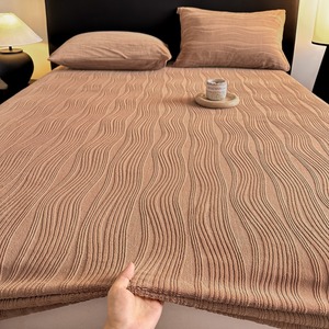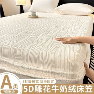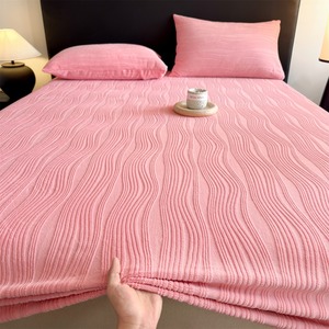 A类冬季加绒保暖雕花牛奶绒床笠席梦思床垫护罩珊瑚绒床套三件套