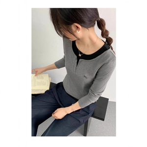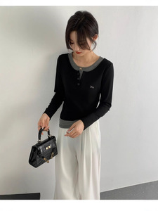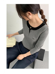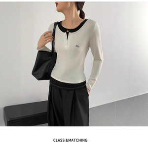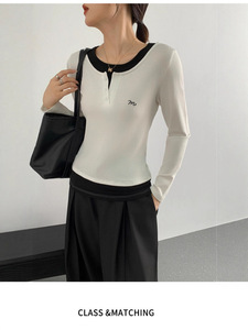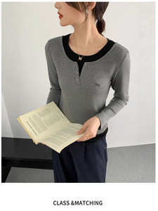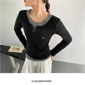 莱赛尔假两件圆领撞色设计感秋冬爆款百搭时尚小众简约正肩打底衫