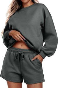新款2025亚马逊跨境爆款 女士2 件套运动服休闲长袖套头衫和短裤