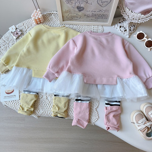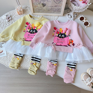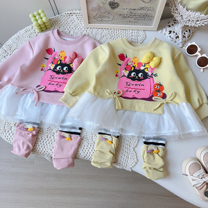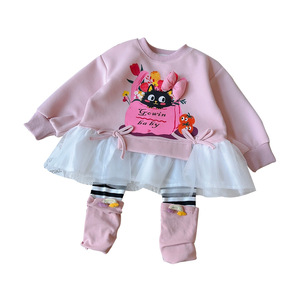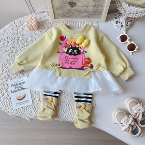 女童卫衣套装春秋季新款女宝宝休闲卡通条纹打底裤两件套AQB077