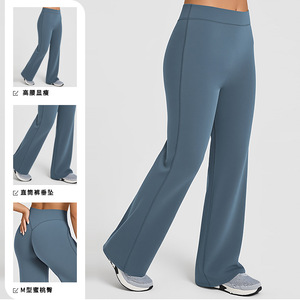 亚马逊爆款直筒瑜伽裤女显瘦速干高级感无尴尬线外穿弹力运动长裤