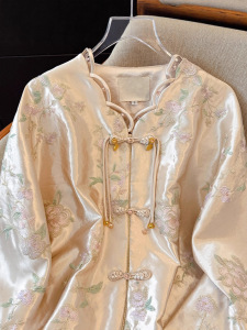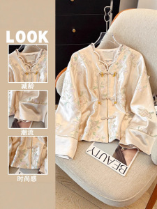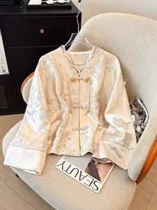 仙鹤梅花中式女春秋时尚上衣圆领刺绣中国风盘扣提花外套复古宽松