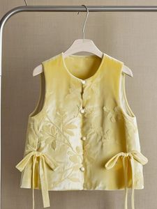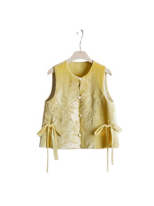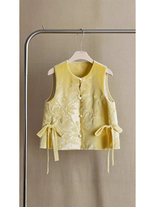 多巴胺穿搭新中式国风独特漂亮黄色提花丝绒马甲背心上衣女秋冬季