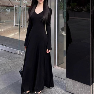 法式针织配大衣连衣裙子2025新款女早春季设计感气质收腰掐腰长裙