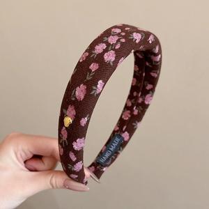7#粉色宽边格子发箍