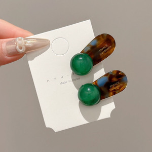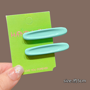 4#彩椭圆碎发夹-绿色一对约5.2cm