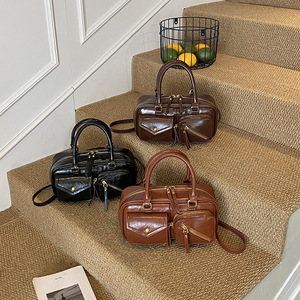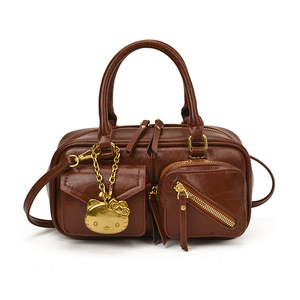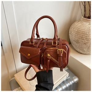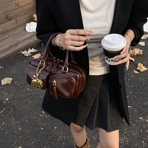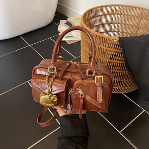 纯色挂件女包时尚复古机车包休闲2025早秋大容量单肩斜挎手提包