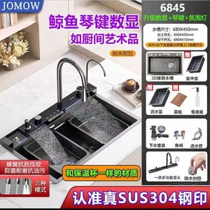 优选厨卫超厚6.0鲸鱼飞雨瀑布304厨房蜂窝水槽数显不锈钢洗菜盆