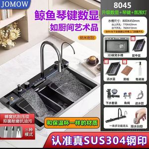 80x45CM【鲸鱼双瀑布至尊套餐】-经典黑色-左排下水/不锈钢G2618热卖