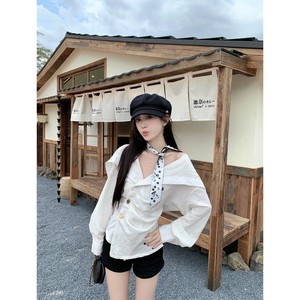 设计感褶皱长袖衬衫女2025秋季新款韩系小众心机修身显瘦别致上衣