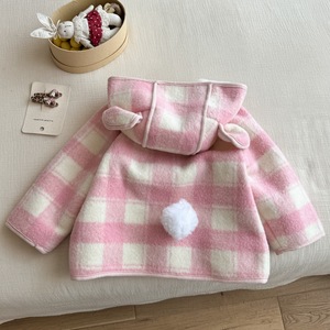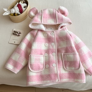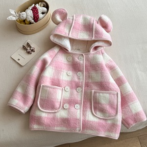 跨境女童加厚外套2025秋冬新款洋气加绒女宝宝上衣冬装连帽外套