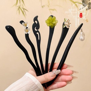 古风红檀木发簪子简国风发饰黑檀木发簪盘发木钗日常汉服旗袍头饰