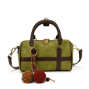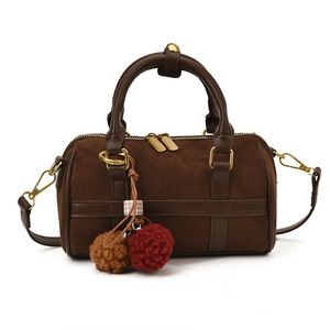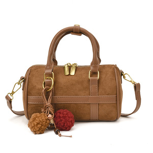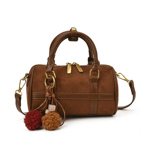 秋季新款美拉德色复古绒面单肩斜跨小包枕头包波士顿手提潮流女包
