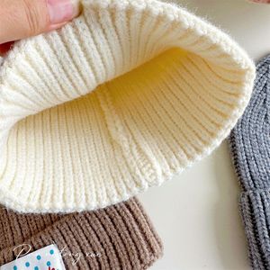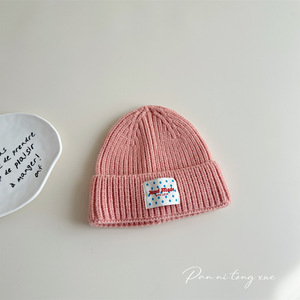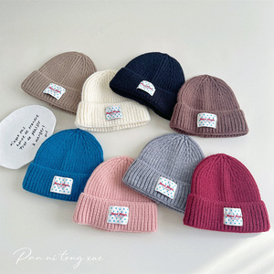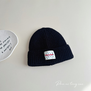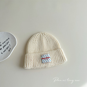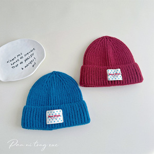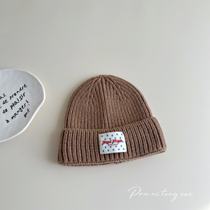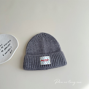 韩版儿童ins针织帽简约字母标纯色套头帽秋冬季学生保暖毛线帽子