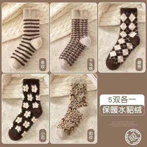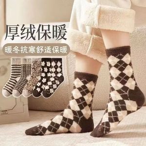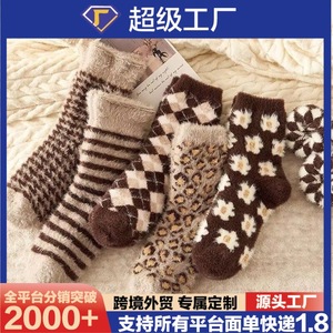 秋冬季水貂绒毛毛袜子女加绒保暖袜加厚复古地板袜个性毛绒袜子