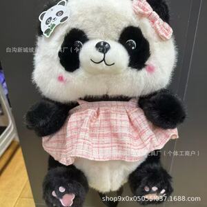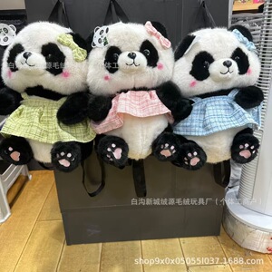 成都新款小香风裙子熊猫玩偶背包少女洋气毛绒玩具公仔双肩包礼物