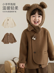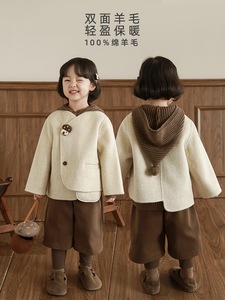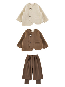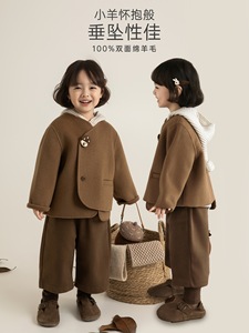 吾里卜一 女童冬套装儿童可爱时尚休闲阔腿裤小V领双面呢大衣外套