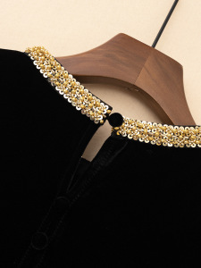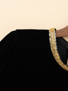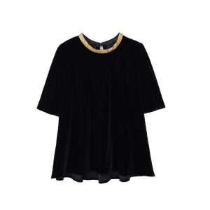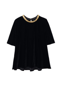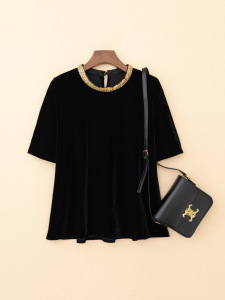 秋装 金丝绒黑色垂感T恤宽松短袖丝绒衫小香风减龄小衫上衣有大码