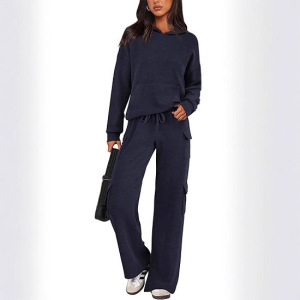 2025欧美跨境女式 2 件套休闲连帽衫运动服套装运动衫宽松秋季时