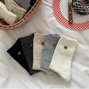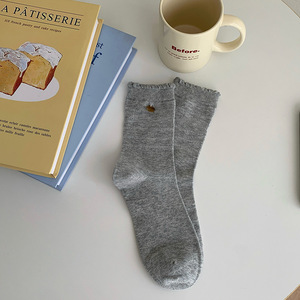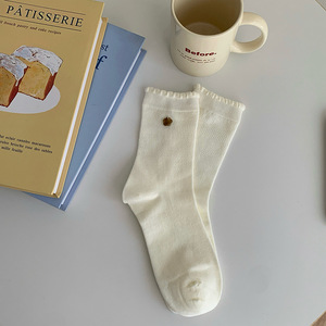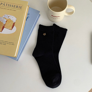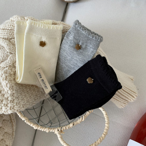 无骨小花贝壳扣子秋冬花边韩系ins少女百搭袜子女中筒袜堆堆棉袜