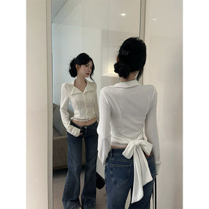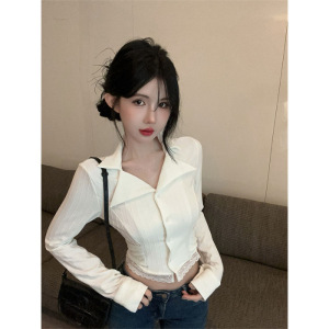 白色蕾丝花边长袖衬衫女早秋设计感小众衬衣独特别致短款法式上衣