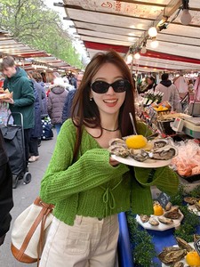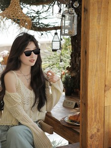 夏诗文 镂空提花V领短款针织套装吊带/系带开衫复古女两件套