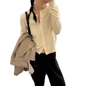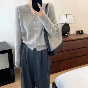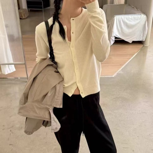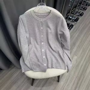 法式温柔风纯色针织开衫女秋冬季新款简约长袖圆领时尚打底上衣潮