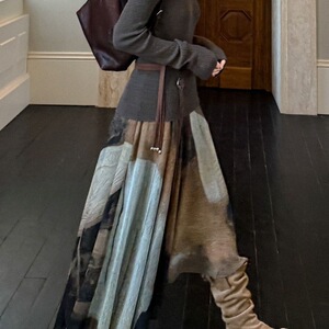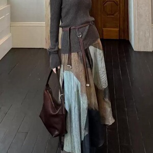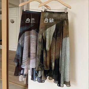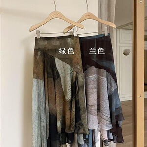 法式氛围感晕染不规则下摆半身裙女秋季新款气质辣妹高腰显瘦长裙