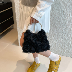 欧美新款玫瑰花珍珠晚宴链条包宴会手提包旗袍晚装百搭斜跨包