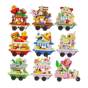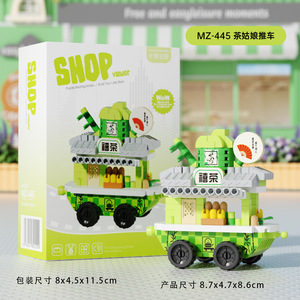 兼容乐高微颗粒街景手推车积木模型儿童益智拼装玩具男孩礼品批发