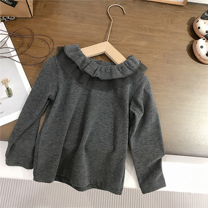 纱领木耳边打底衫 灰色