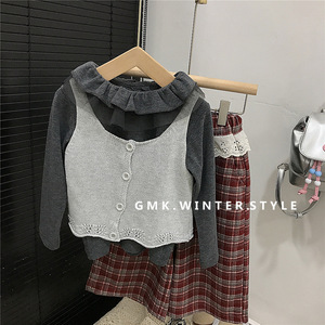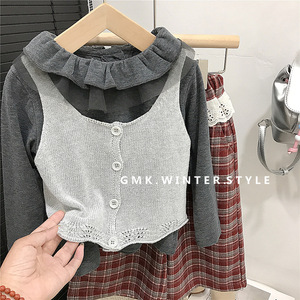 森系女童马甲新款儿童秋装女孩毛衣开衫女宝宝针织背心春秋款外贸