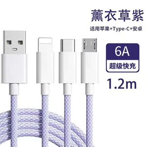 【6A编织一拖三薰衣草紫】1条促销装★快充不伤机